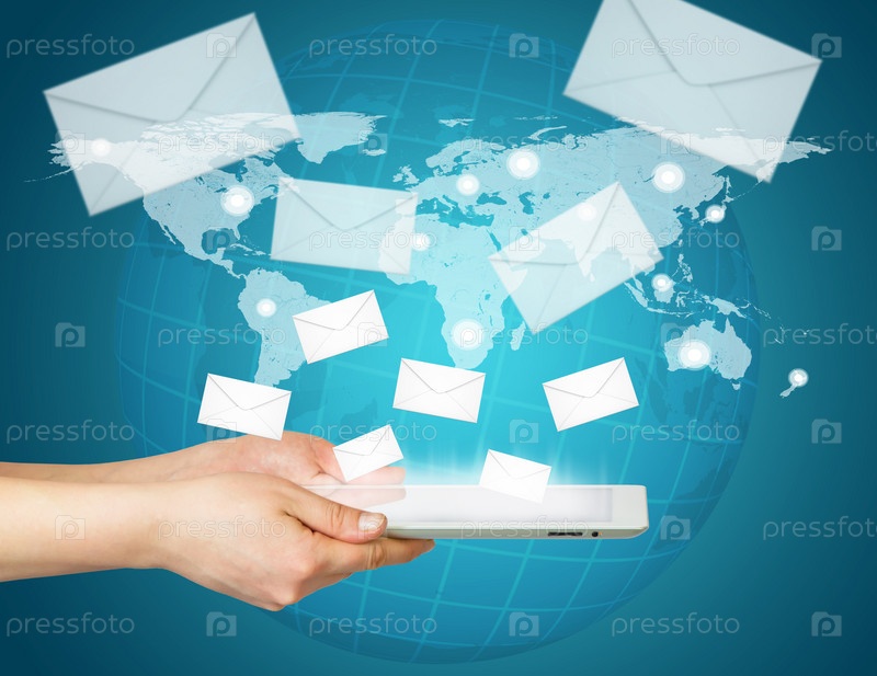 Рука, планшет, конверты