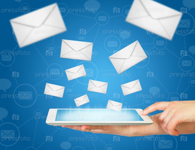 Рука, планшет, конверты