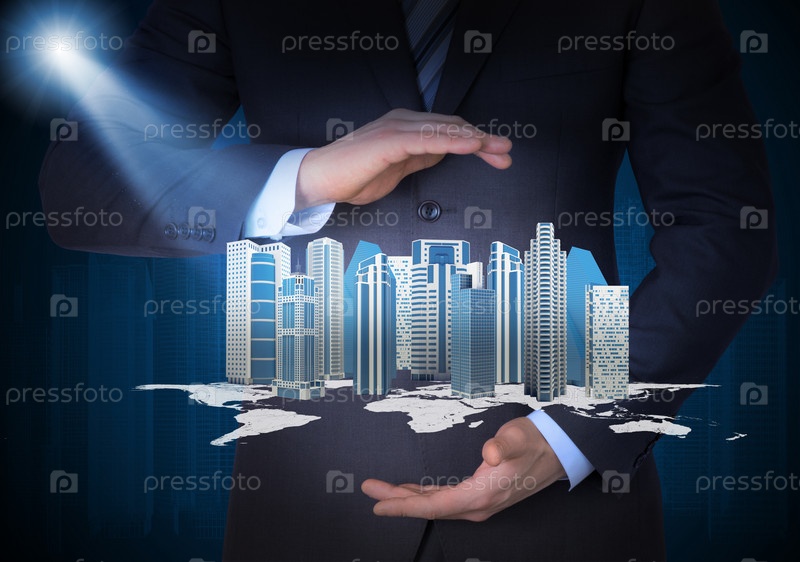 Мужчина в костюме и небоскребы