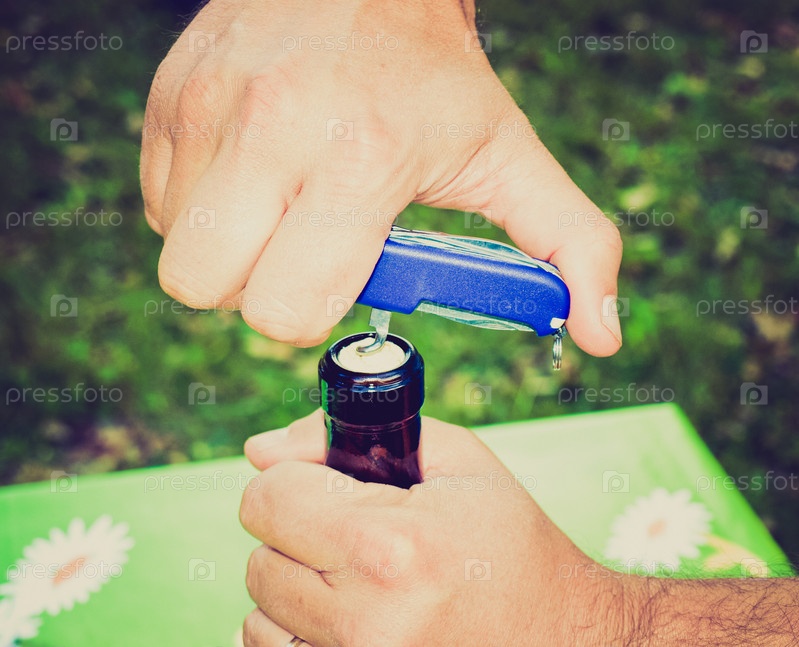 Руки открывают вино штопором