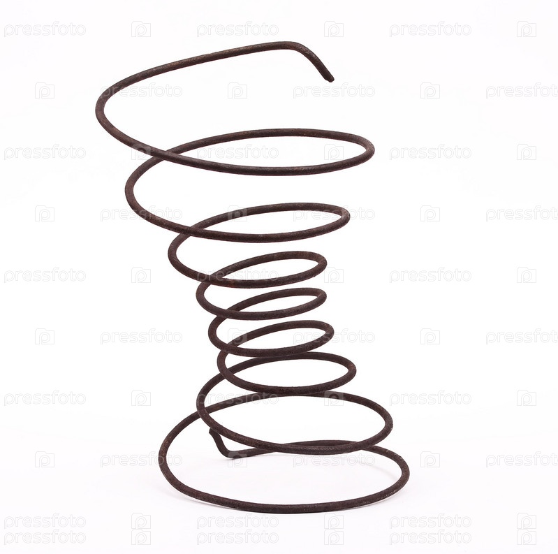 Старая ржавая пружина на белом фоне
