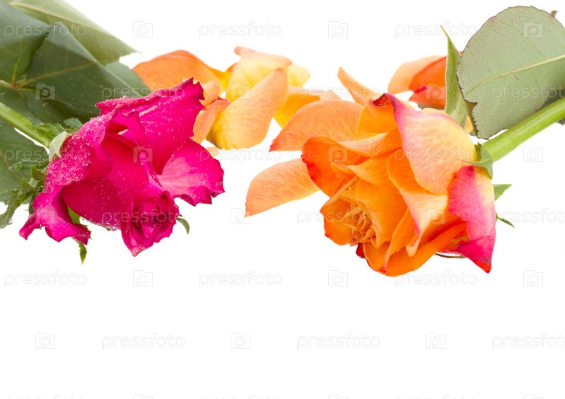 Розовая и оранжевая розы с лепестками