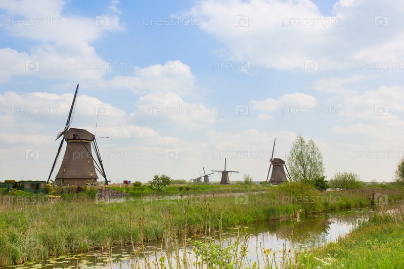 Голландские мельницы в летний день
