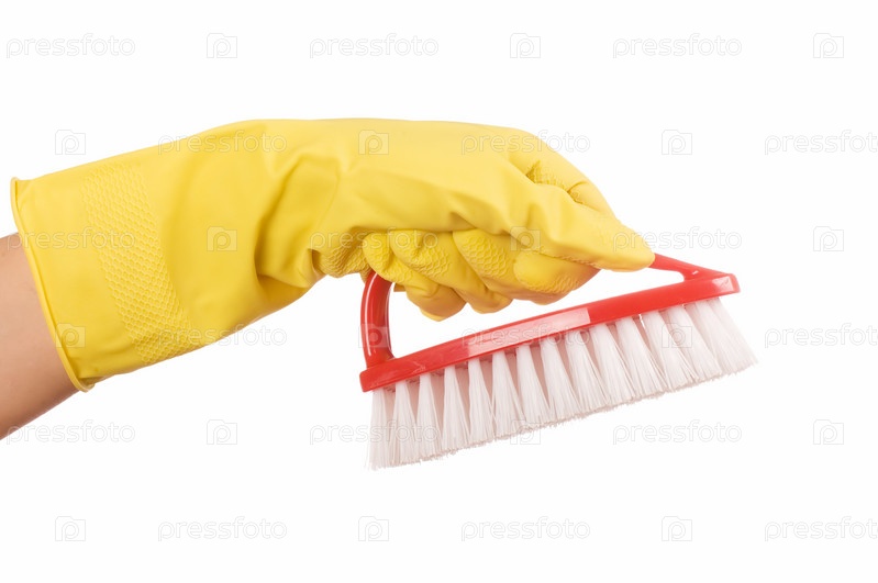Щетка в руке с резиновой перчаткой