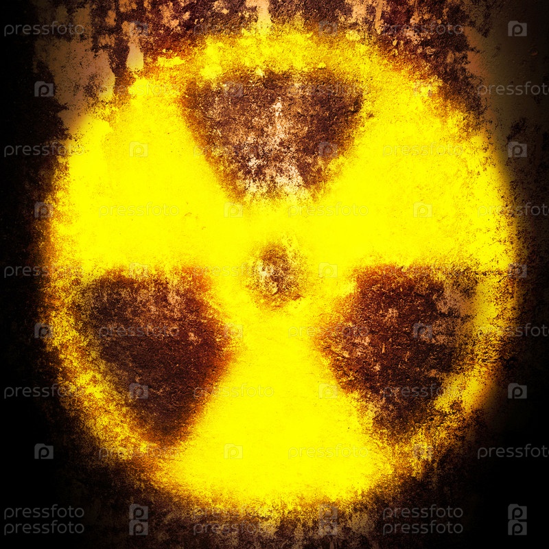 Знак радиации на ржавой поверхности, иллюстрация