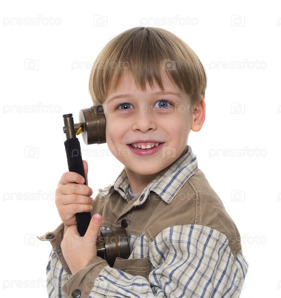 Мальчик со старым телефоном