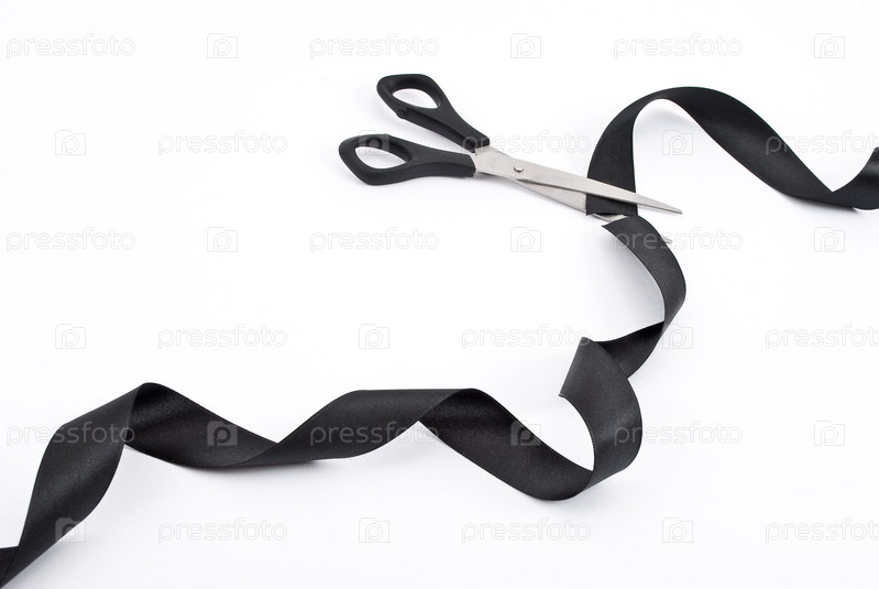 Черная разрезанная лента и ножницы