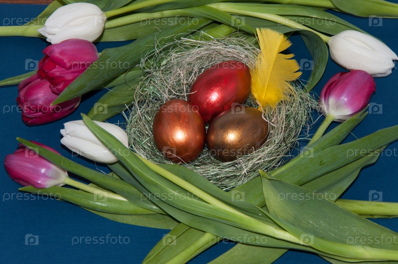 Пасхальные яйца и тюльпаны
