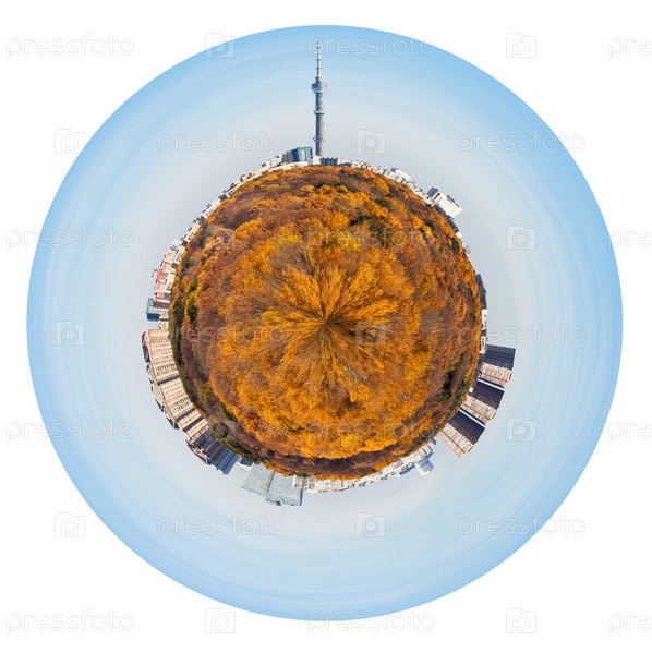 Осенний лес, городские дома и телевизионная башня