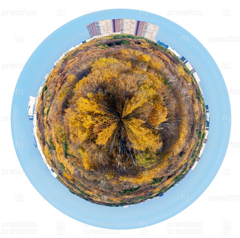 Осенний лес, городские дома
