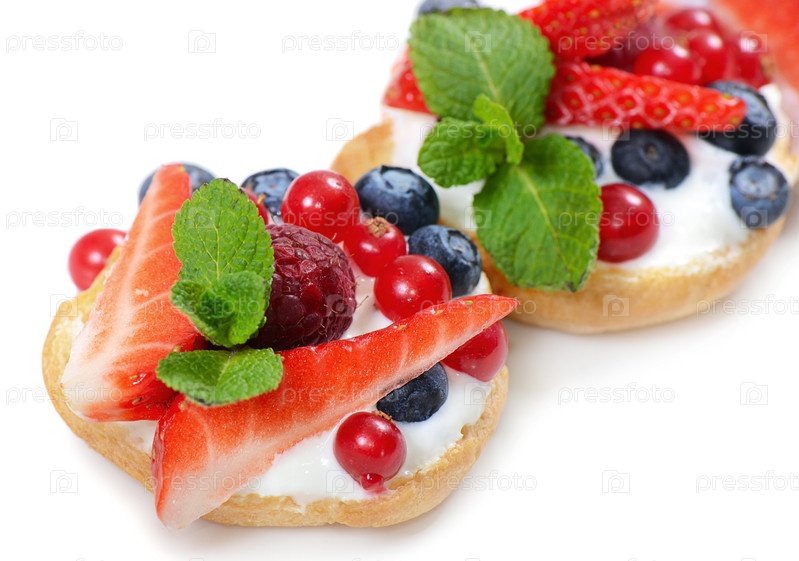Профитроли с ягодами смородины и клубники