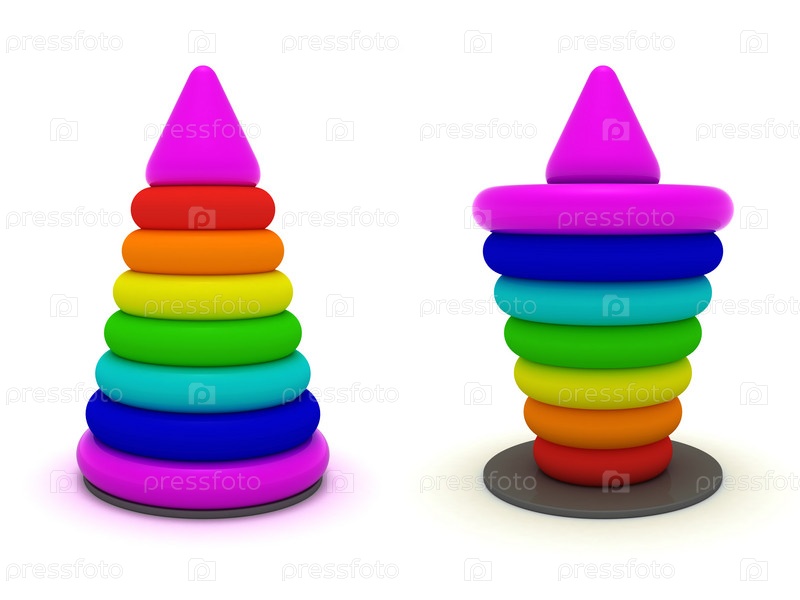 Две детские пирамидки на белом фоне