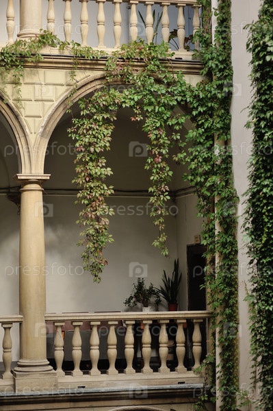 Плющ на стене здания
