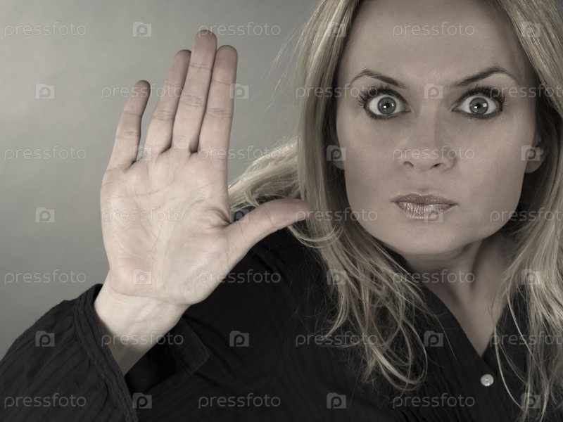 Женщина показывает жест "стоп"