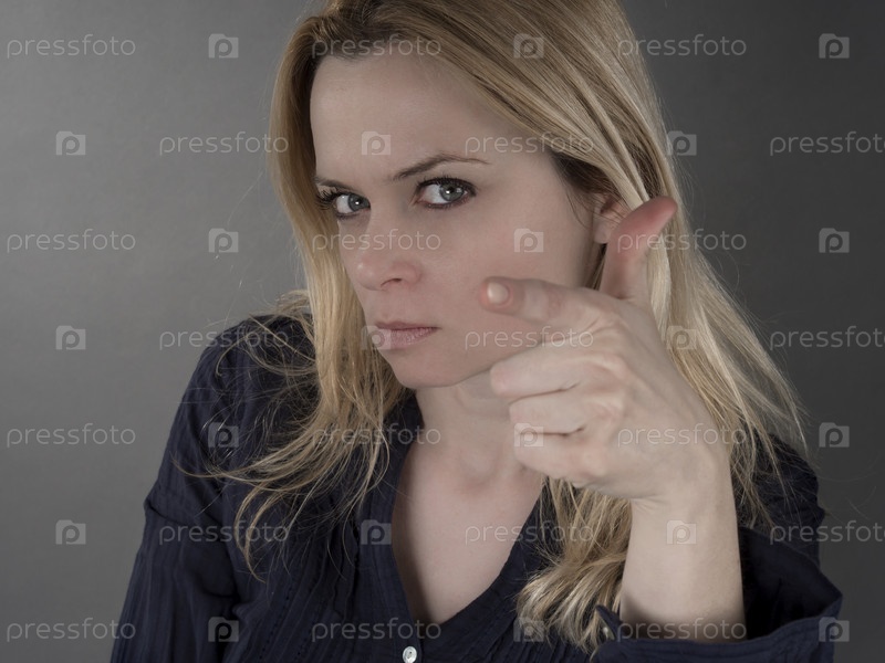 Злая женщина показывает пальцем