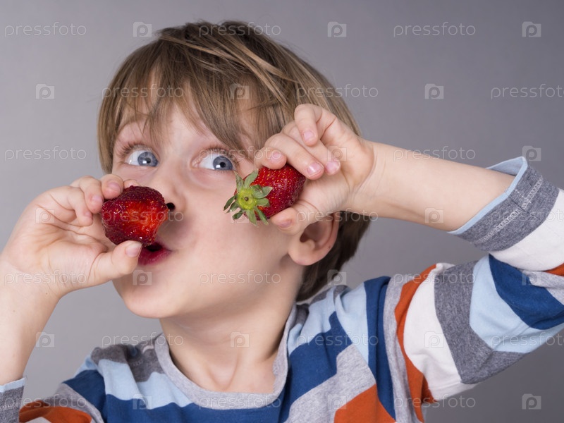 Мальчик любит клубнику