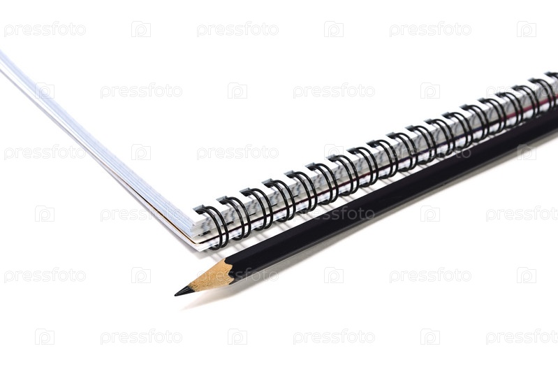 Карандаш и блокнот на белом фоне