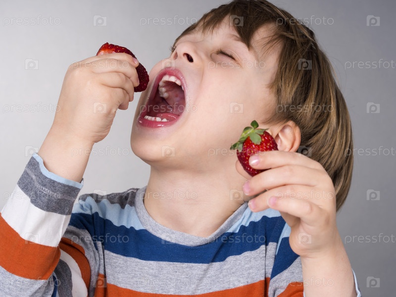 Милый мальчик любит клубнику