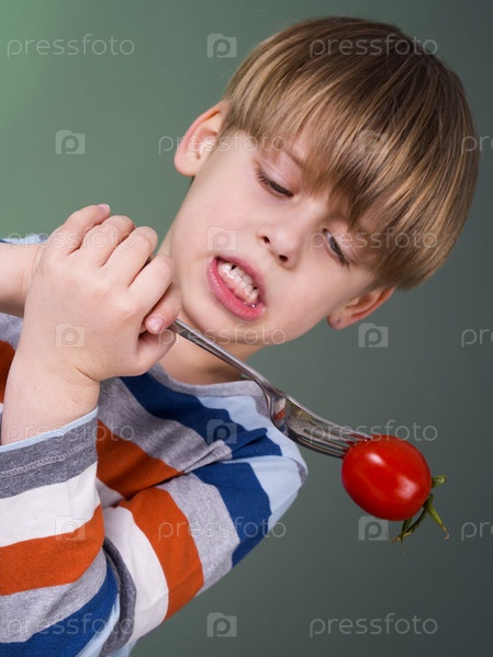 Милый ребенок ненавидит помидор