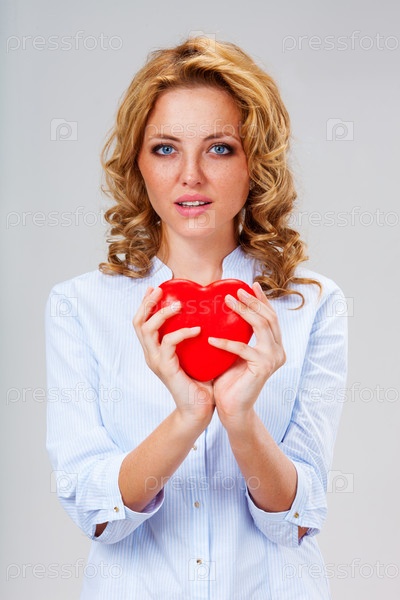 Женщина держит красное сердце