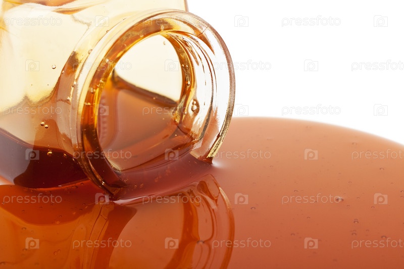 Мед, пролитый из стеклянной банки