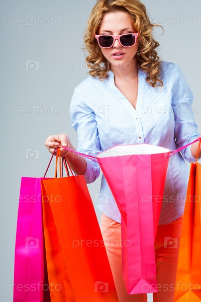 Счастливая женщина с цветными пакетами