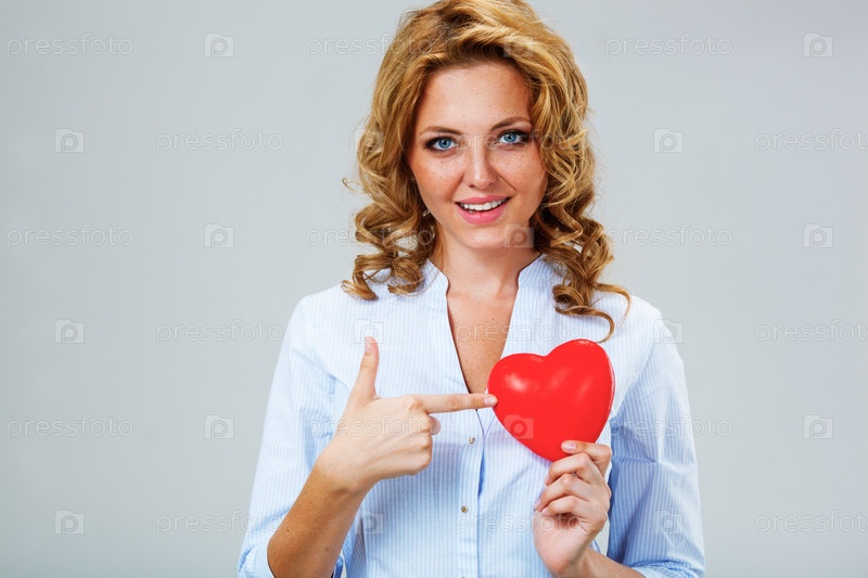 Женщина держит красное сердце