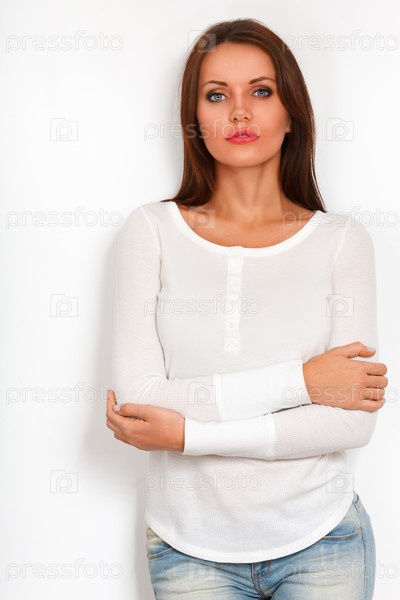 Женщина стоит у стены