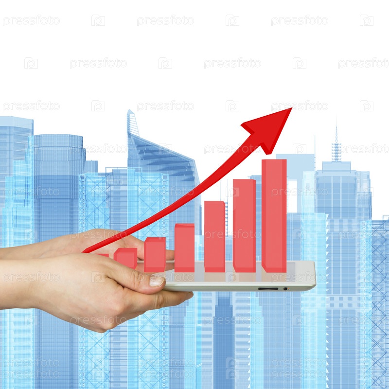 Рука держит планшетный компьютер с графиком