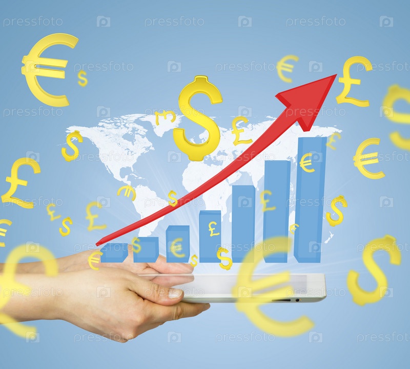 Рука держит планшетный компьютер с графиком