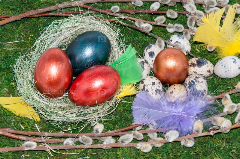 Веточки вербы и пасхальные яйца