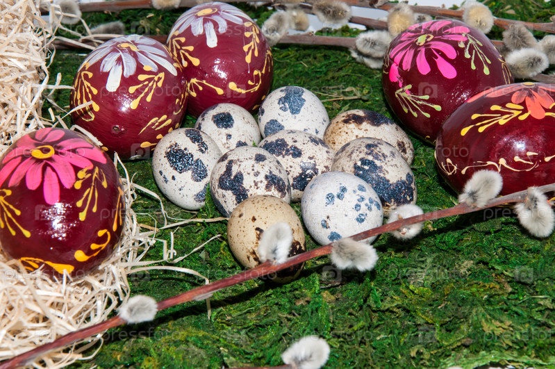 Веточки вербы и пасхальные яйца