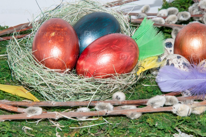 Веточки вербы и пасхальные яйца