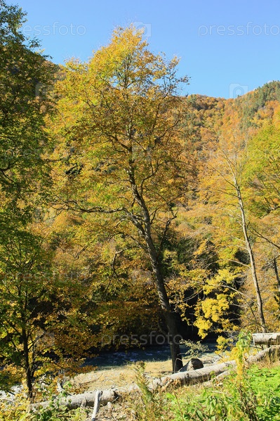 Осенний бук на берегу Большого Зеленчука