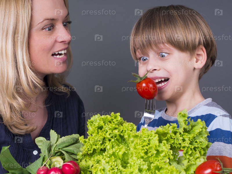 Мать кормит ребенка полезной едой