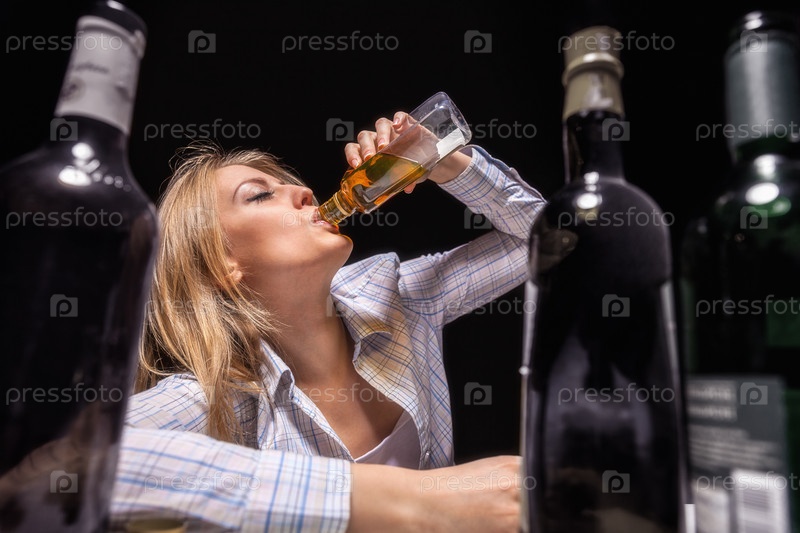 Женщина пьет алкоголь
