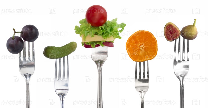 Свежая здоровая пища на вилках