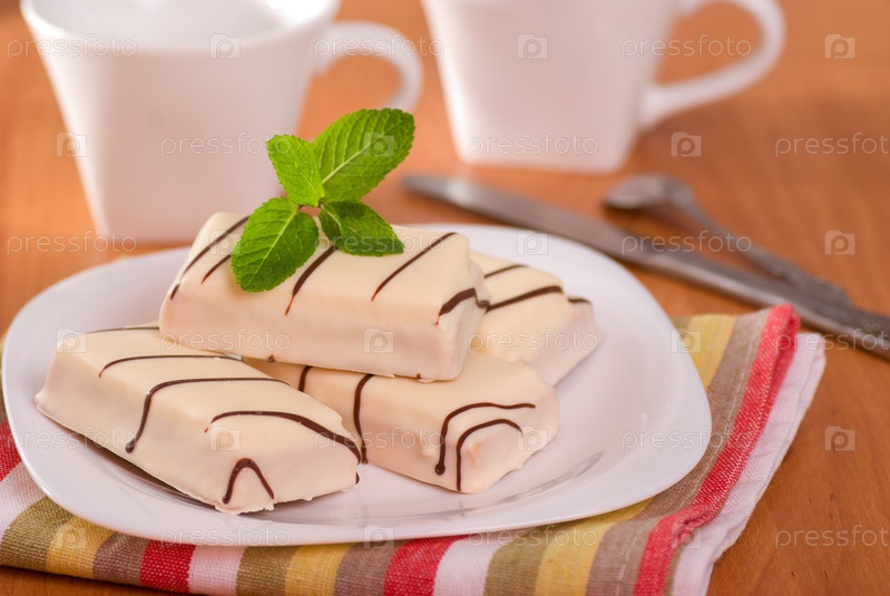 Пирожные в белой шоколадной глазури
