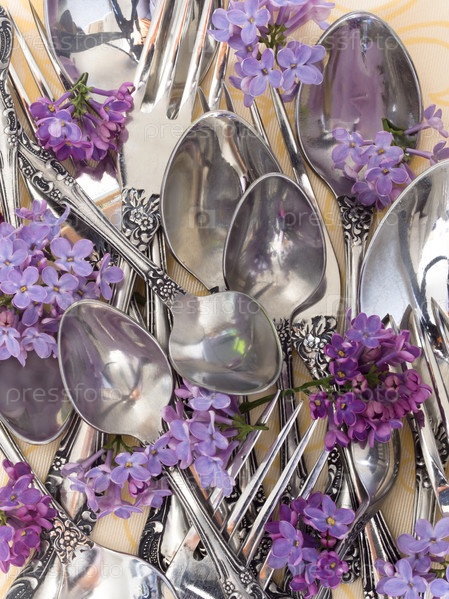 Вилки и ложки с весенними цветами