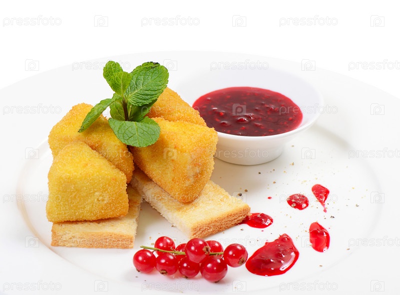 Сыр в сухарях с вареньем из смородины
