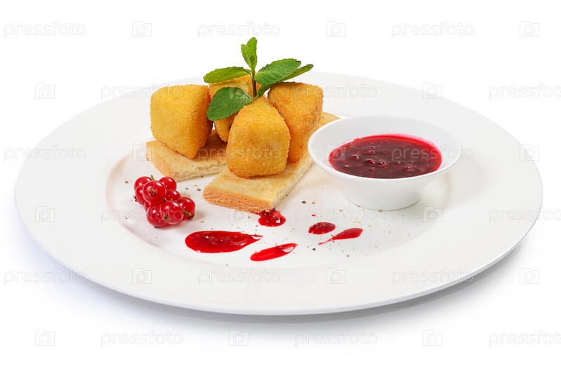Сыр в сухарях с вареньем из смородины