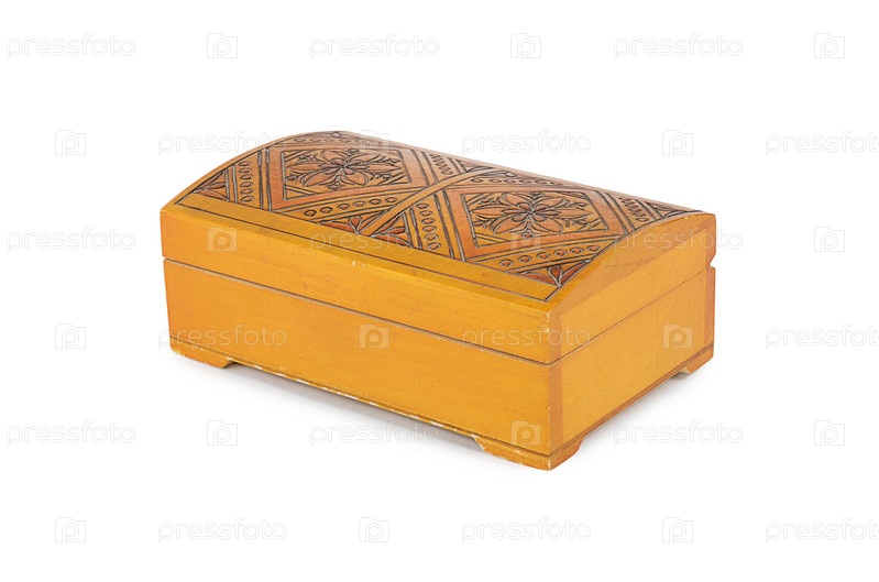 Старая деревянная шкатулка, изолированная на белом