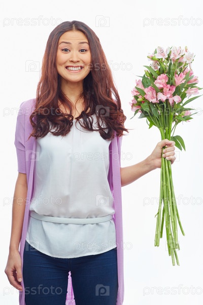 Счастливая девушка с цветами