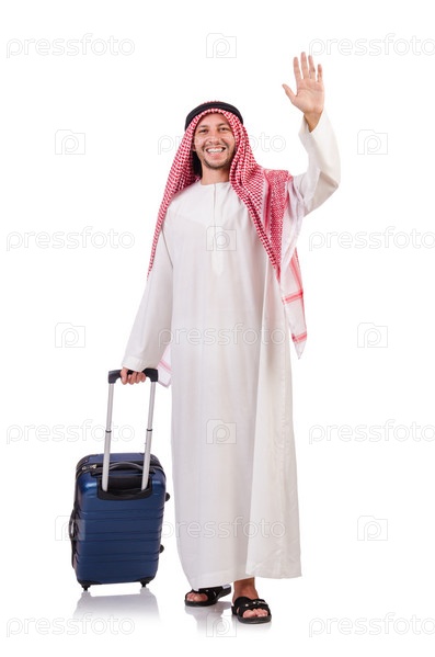 Араб с багажом на белом фоне