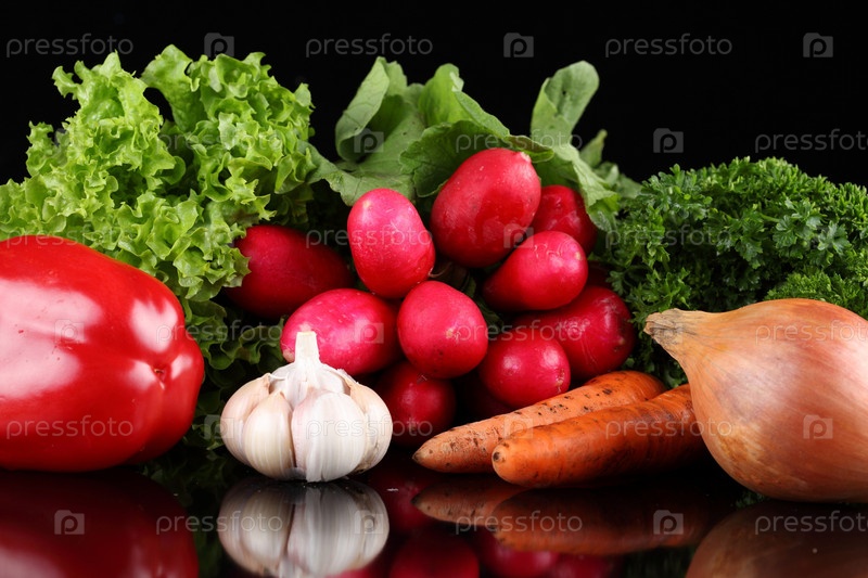 Натюрморт из свежих овощей на черном фоне