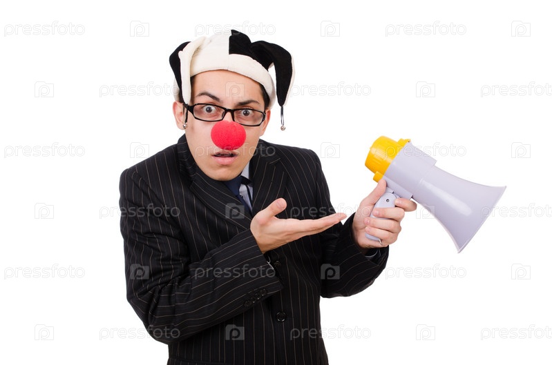 Бизнесмен в клоунском колпаке, изолированный на белом фоне
