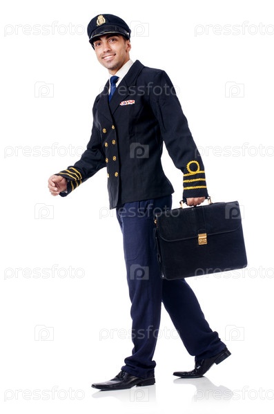Молодой пилот, изолированный на белом