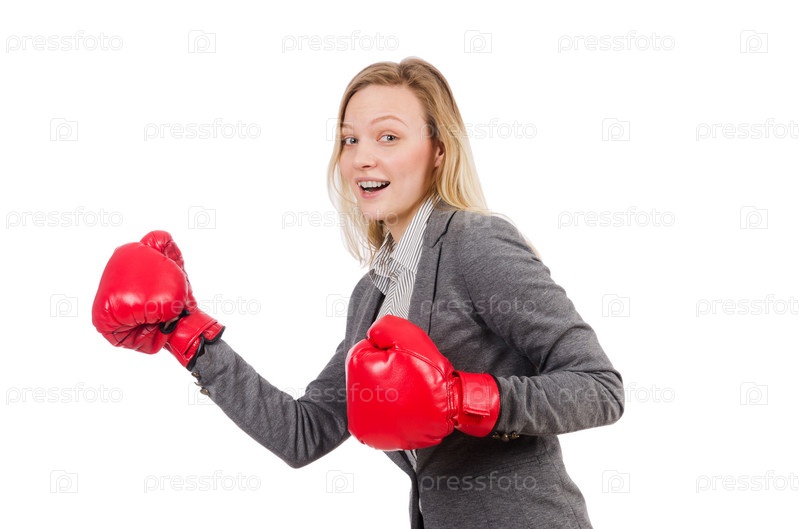 Деловая женщина в боксерских перчатках