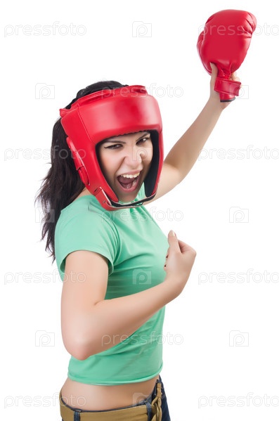 Женщина боксер на белом фоне