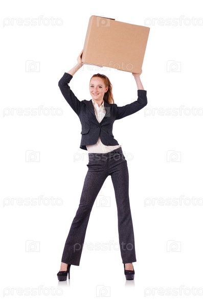 Бизнес-леди с коробками на белом фоне
